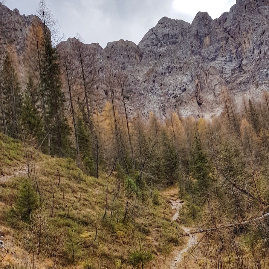 Spontan habe ich mir auf der Karte diese kurze Route vom Camping Marmolada aus herausgesucht. Forstweg hoch, Trail runter, normalerweise immer eine gute Wahl.