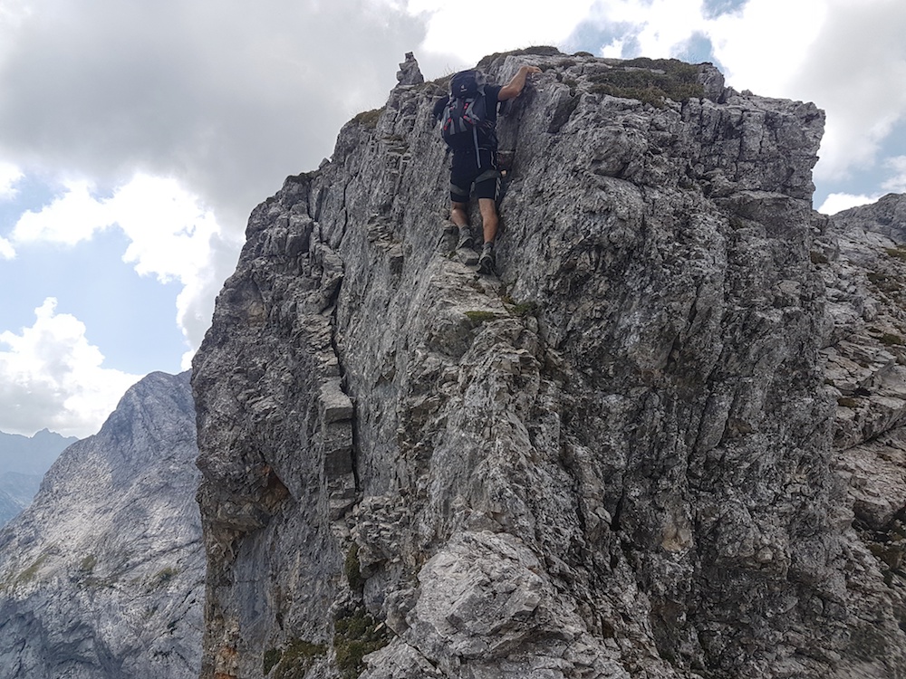 | Eine kurze Kletterstelle vor dem Hauptgipfel der Bettlerkarspitze |